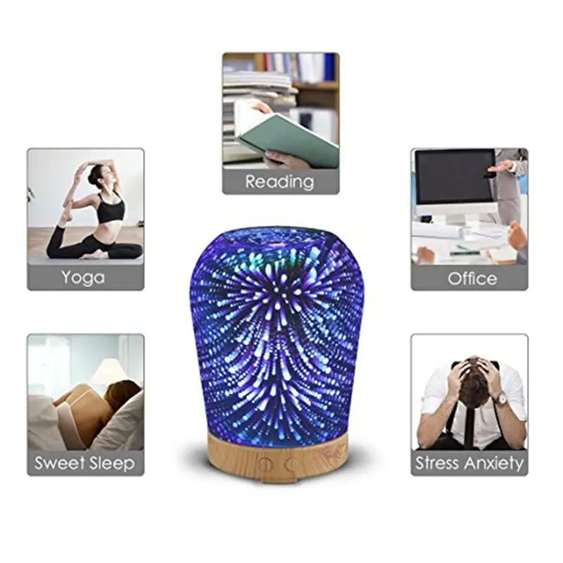 Dear my personal favorite 100mL Aromatherapy 3D Essential Oil Diffuser Auto Shut off Ultrasonic Aroma Cool Mist Humidifier with 7 Color Light Wooden Base RECOMMENDED TODAY