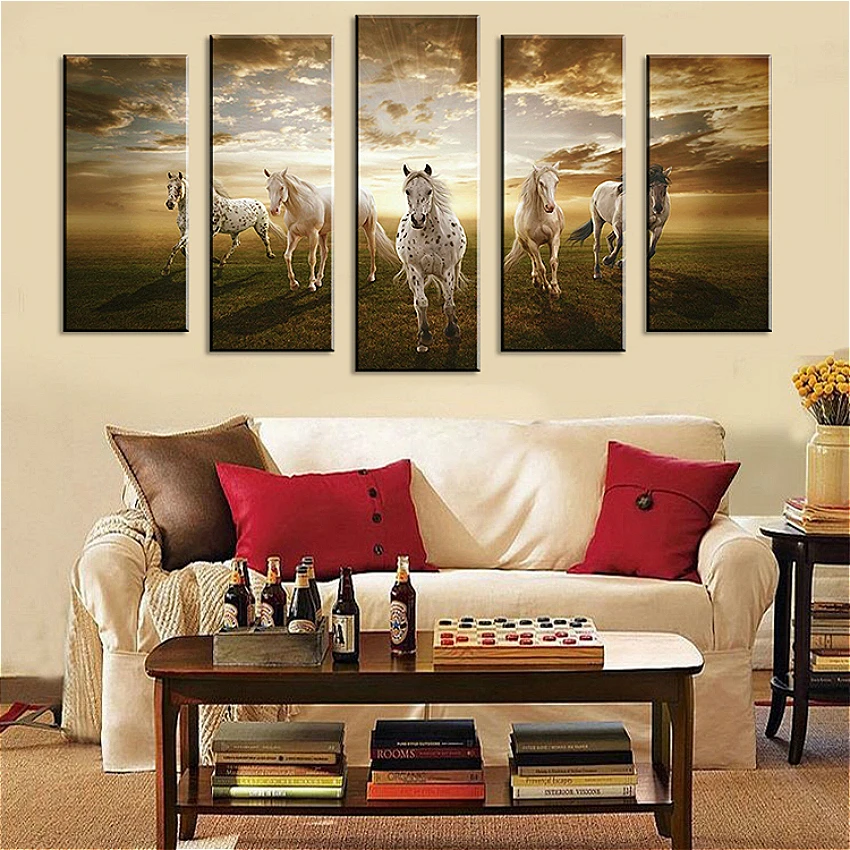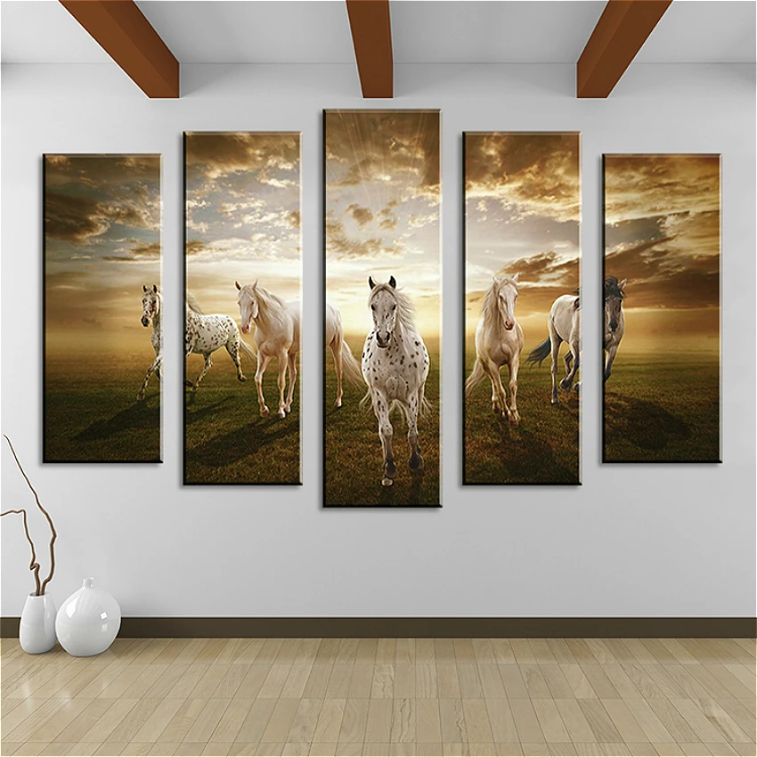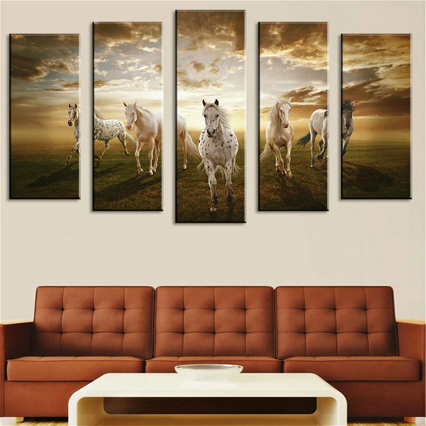 [[SPECIAL OFFERS]] Canvas Painting Poster And Print Horse Animals Paintings For Living Room Wall Art Modern Home Decoration Hot Gift Large 5 Pieces one of the best