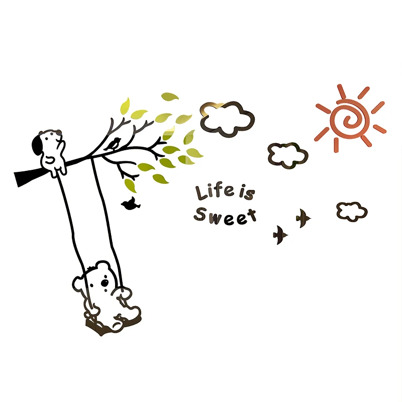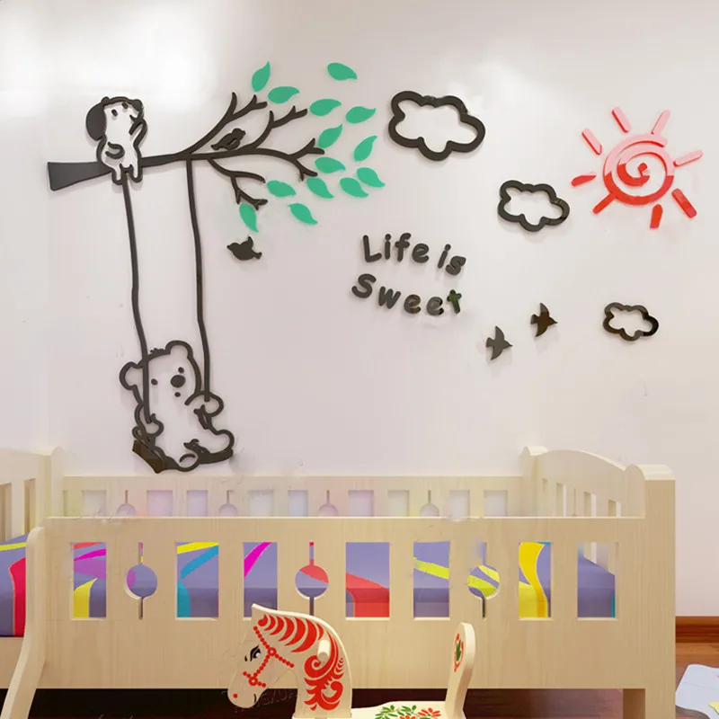 DISCOUNT my personal favorite Bear Swing 3D Wall Sticker Acrylic TV Background Decoration Wall Sticker Kids Bedroom Wallpaper Home Decor Cartoon Art Stickers RECOMMENDED TODAY